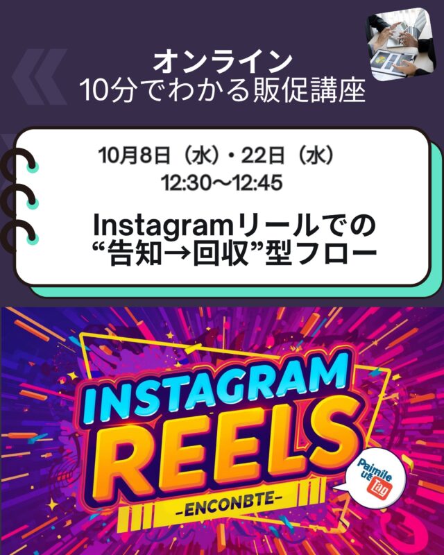 「10分でわかる販促講座」今回のテーマは Instagramリールでの“告知→回収”型フロー。
