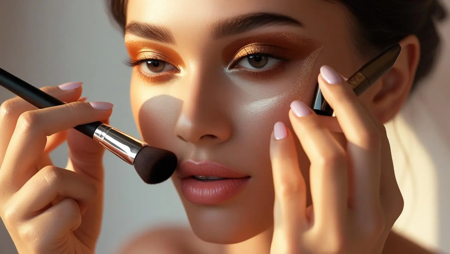 ブラシでふんわり自然に仕上がり、時短メイクの強い味方。プロっぽい立体顔に。