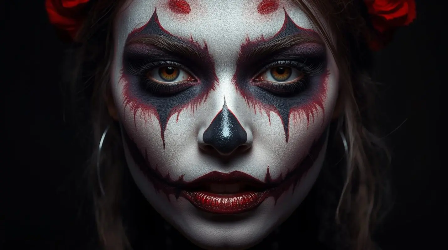 ハロウィン定番の“吸血鬼風メイク”は、赤と黒のコントラストで一気に雰囲気が出ます。