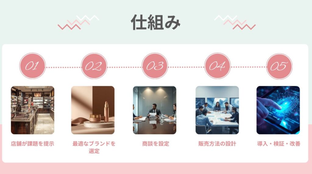 地域美容店の“経営課題”を起点に、最適な日本製ブランドと接続し、販売方法まで設計するマッチングプラットフォーム。