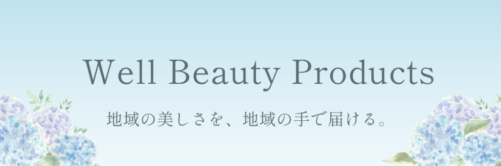 ウェルビューティプロダクツ(Well Beauty Products)は、地域で生まれた素材・技術・想いを活かし、「その土地ならではの美と健康」を届けるためのブランド群です。